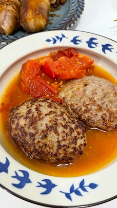 もも酒蒸しハンバーグ🍅